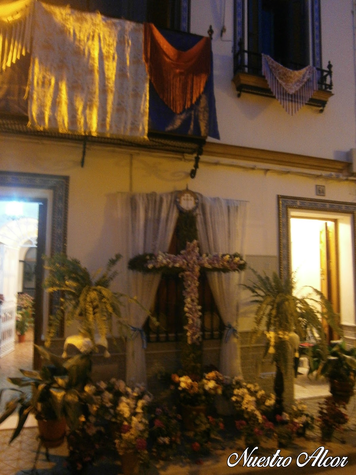La Santa Cruz procesionó sobre unas bellas andas procesionales exornadas con una variedad floral muy colorida y llamativa e iluminadas por cuatro candeleros y dos faroles de cera blanca.